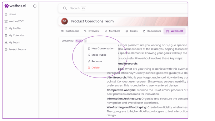 WethosAI now includes two powerful features to enhance your team collaboration and conversation management: Shared Conversations and Persistent Conversations.