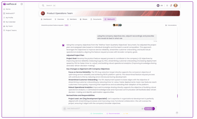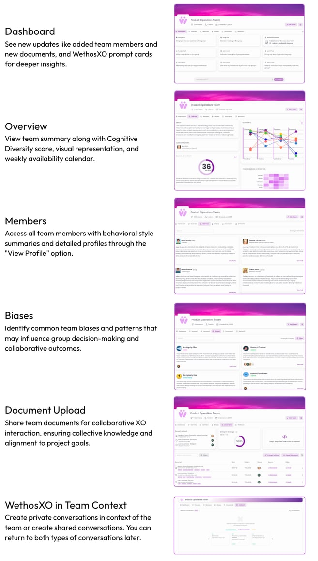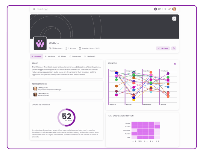 Snapshots, Bias Detection, and Team Insights. Use WethosXO to understand dynamics and optimize task allocation.