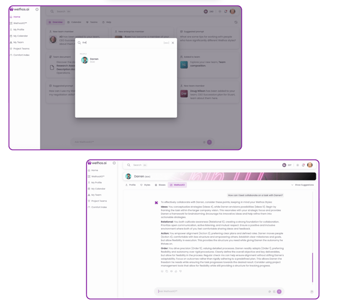 - View your top 4 collaborators and their Wethos Style numbers for better interaction