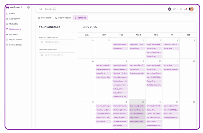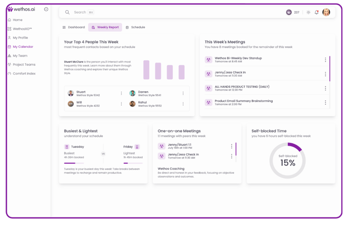 Transform your calendar into a collaboration powerhouse with WethosXO-powered meeting insights, time analytics, and participant working styles.