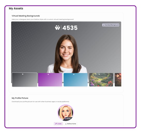 - Virtual Meeting Backgrounds: Custom backgrounds featuring your Wethos Style to help colleagues learn about your working preferences