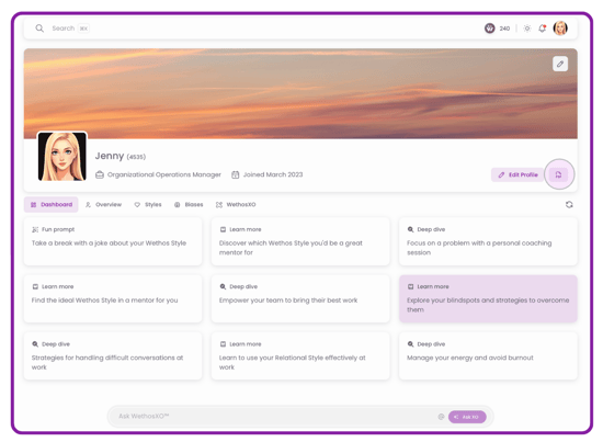 Your profile is the foundation of your WethosAI experience. Take time to customize it fully to get the most value from the platform's collaborative features and insights.
