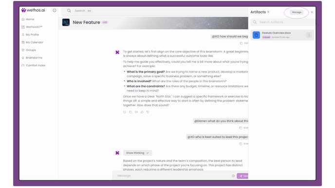 - Bring in WethosXO™ as a participant when you need AI-powered insights
